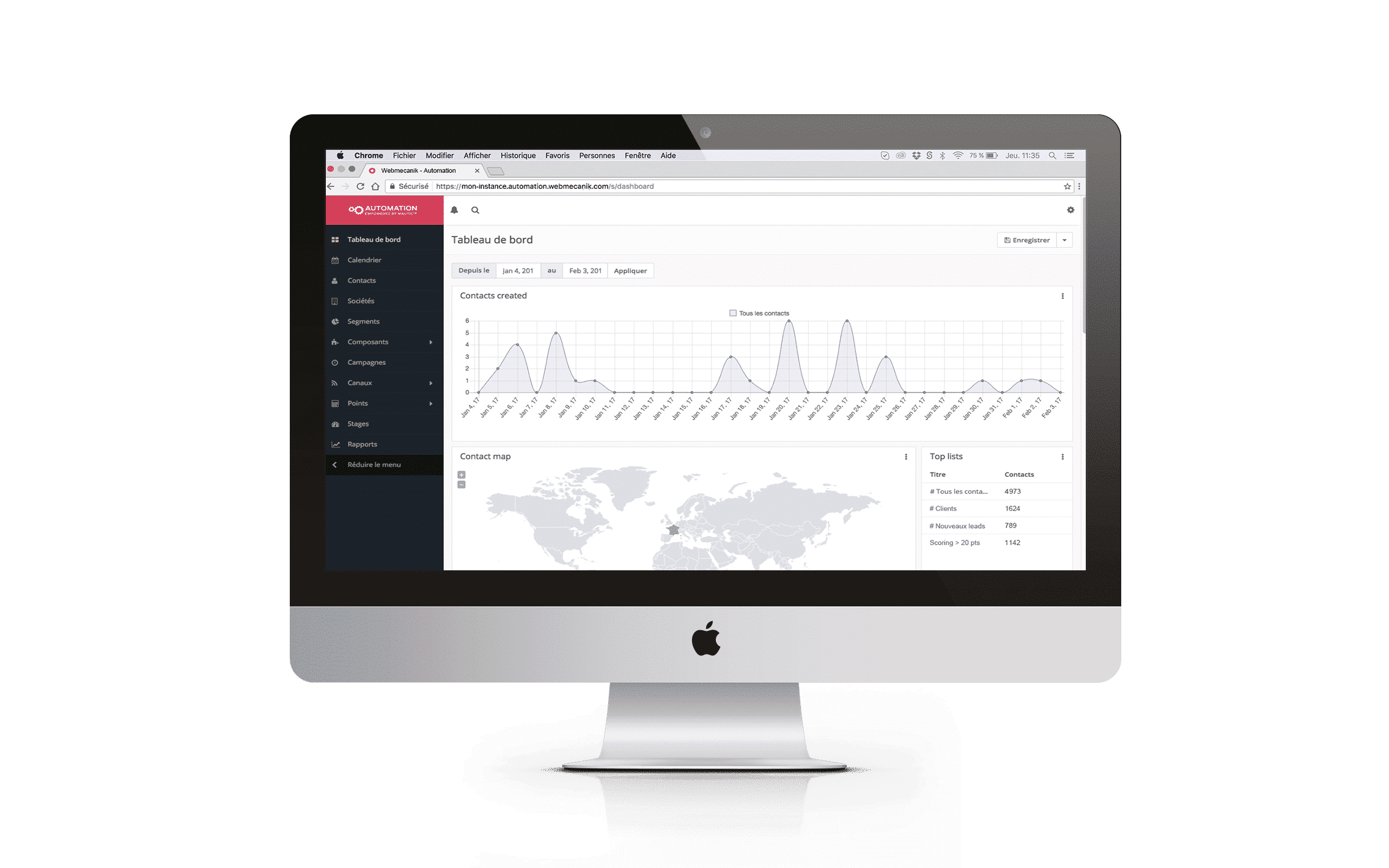 Unsere All-in-One-Software für Marketing Automation bietet Ihnen eine Vielzahl von Tools, um Ihre Kundenbeziehungen zu personalisieren: Machen Sie mehr Leads zu Kunden, automatisieren Sie Ihre Geschäftsbeziehungen und erreichen Sie so den bestmöglichen ROI auf allen Kommunikationskanälen (E-Mail, SMS, Benachrichtigungen usw.). Das Besondere an Webmecanik Automation: Es ist die erste europäische Lösung, die für die Open-Source-Marketing-Automation-Software Mautic entwickelt wurde. Zudem verfügen wir über umfangreiches Know-How im Bereich Marketing Automation, das wir Ihnen durch eine ausgewählte SaaS-Lösung, Support sowie Schulungen zur Verfügung stellen – und so Ihre Marketingkampagnen zu einer echten Erfolgsstory machen.